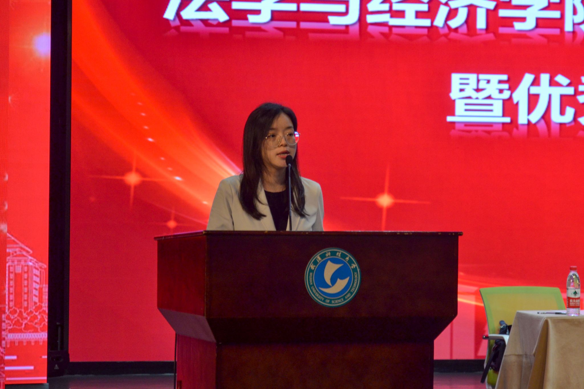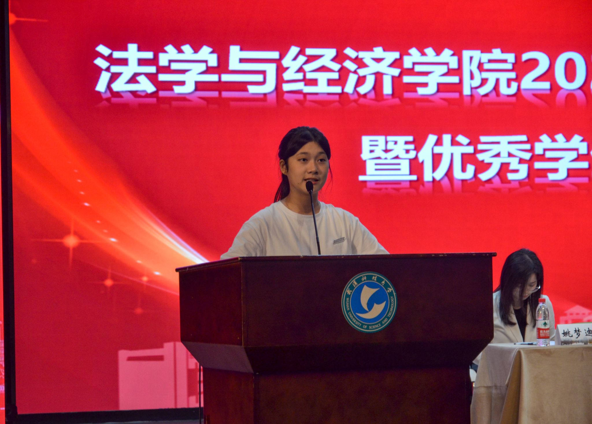 姚梦迪作为教师代表,以自己的求学经历和自身经验向2023级新生分享自己的体会。她表示,学在法经,学生既要培养坚韧不拔、勇承重载、崇实求精的钢铁品质,也要认真学好专业知识,做专业人才,承学院发展重任。