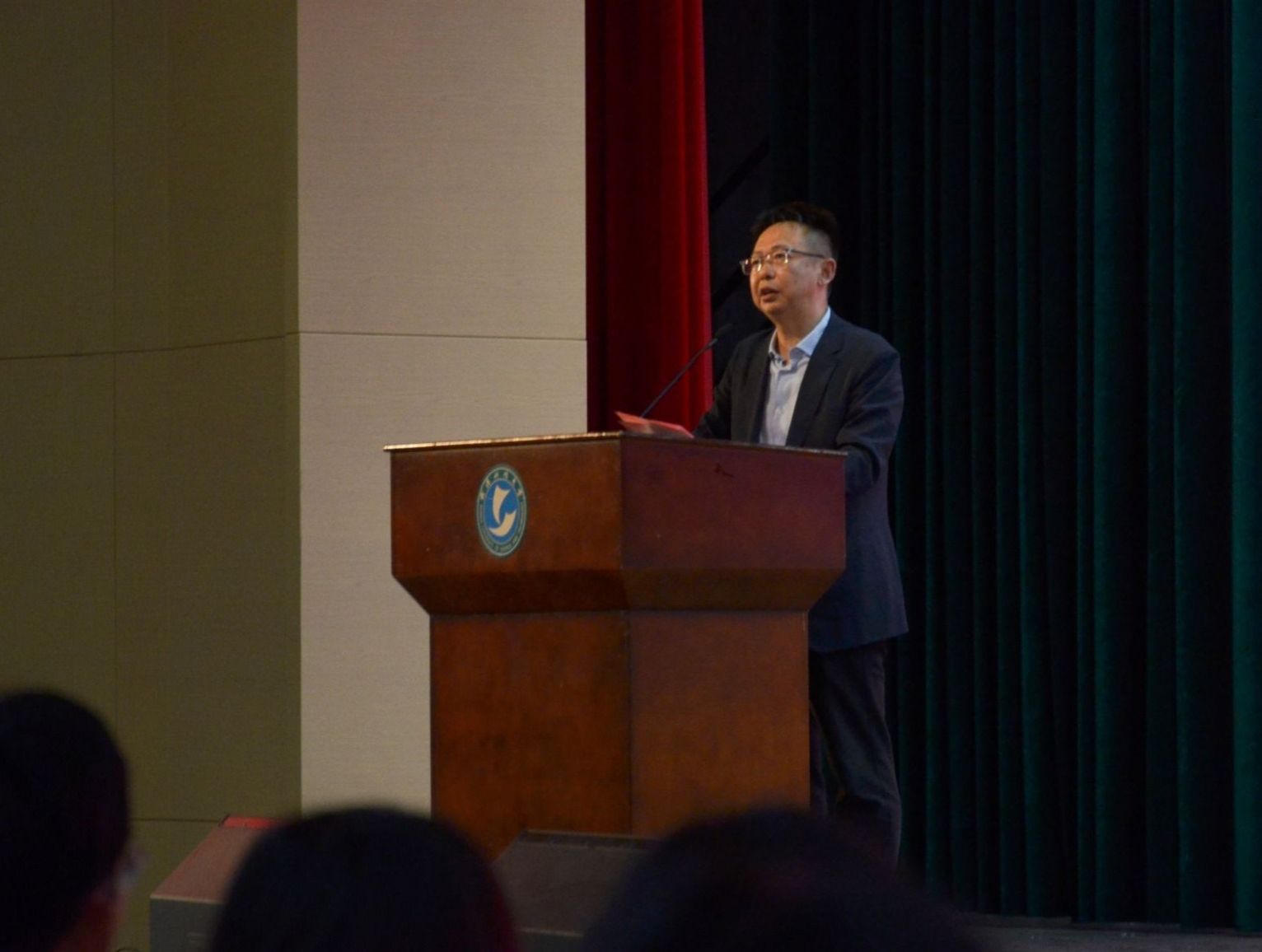 最后,院长袁年兴发表讲话,他首先代表学院向2023级本科生表示由衷的祝贺和热烈的欢迎,他向同学们简要介绍了学院办学情况、发展概况和所取得的累累硕果。他以“找到自己的大学”为题,向新生提出四点希冀:要与思考同行,要和创新为伴,要让务实相随,要从归零开始。他深切寄语,同学们生逢伟大盛世,有着无可比拟的人生际遇,希望2023级新生能在武科大找到自己的青春和未来,在我院书写属于自己的精彩人生。要脚踏实地、求真力行,把自己的所学所思应用到为人民服务中去,争做堪当民族复兴重任的时代新人,在实现中华民族伟大复兴的时代洪流中谱写法经学子的时代华章。
