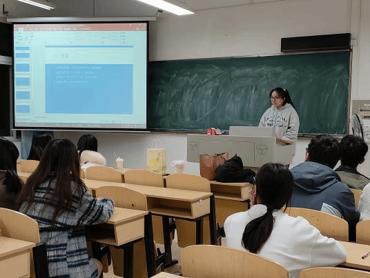 本次班会由经贸2306班班主任万筱雯主持,在活动开始时,万筱雯老师以“大同学活是否和你想象的一样?”引入今天所要谈论的话题:学习经验交流,并邀请了两位学姐进行分享,她们是今年拔尖录取到应用经济学的研究生,目前处于研究生学习阶段。随后,学姐们逐一上台,分享了自己的学习经验。