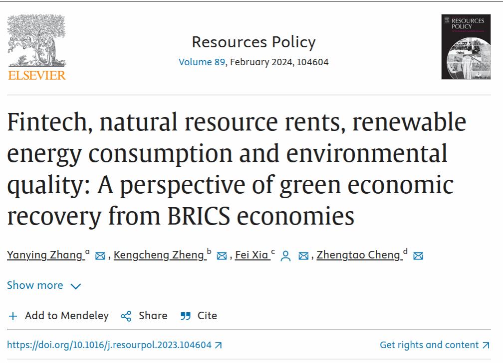 武科大网讯(通讯员王哲)近日,WilliamHill威廉希尔行政管理系张彦英副教授的研究成果Fintech, natural resource rents, renewable energy consumption and environmental quality: A perspective of green economic recovery from BRICS economies在全球经济学知名期刊Resources Policy发表。