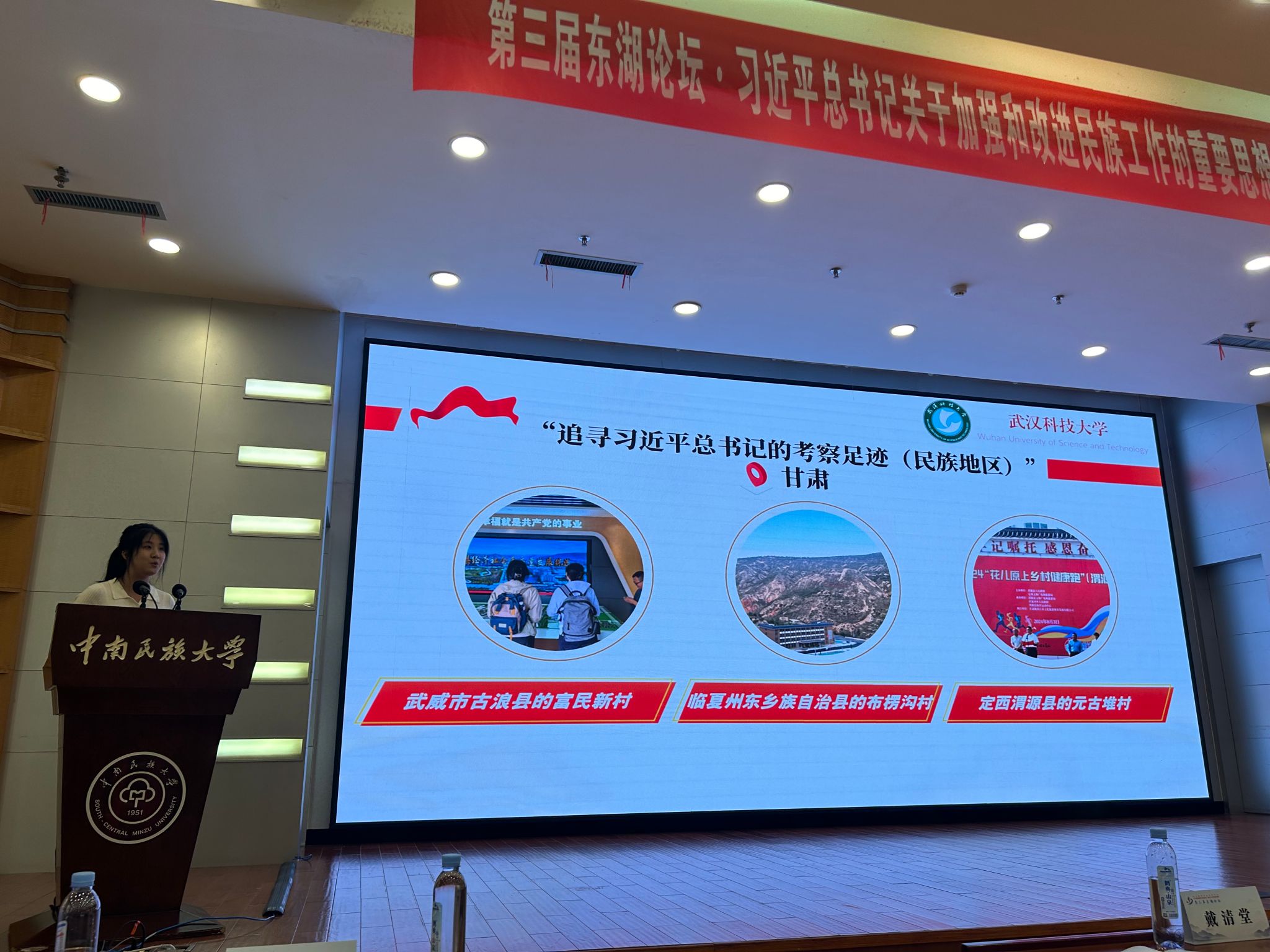 2024年9月26日,第三届东湖论坛暨湖北省民族学会2024年年会在中南民族大学召开,本次论坛以“习近平总书记关于加强和改进民族工作的重要思想”为主题,旨在全面贯彻落实党的民族工作新思想,通过跨学科的学术交流与对话,共同推动新时代民族工作理论研究的深入发展。我院22级社会工作专业本科生周藤岭作为学生代表参会并做主题发言。