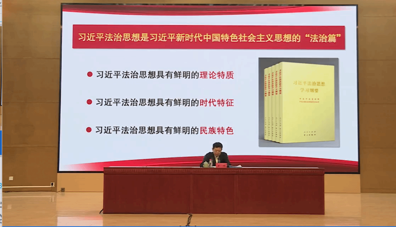 本期法治实务大讲堂由黄祎主讲,以“学深悟透习近平法治思想,坚定不移走习近平法治道路”为主题,思考如何更好理解把握习近平法治思想的内涵,围绕习近平思想关于“十一个坚持”的论述展开。黄祎将中国法治与西方做对比,突出了中国法治体系的优越性——坚持党的领导,强调我国法治坚持以人民为中心的法治思想,举例说明了我国在立法、执法、司法方面取得的重大成果,指出坚持在法治轨道上推进国家治理体系和治理能力现代化,是全面依法治国的时代使命。黄祎还举例福建蒲公英普法志愿队,从最初的七人发展到现在的十三万人,我国的基层法制建设取得重大成效。黄祎呼吁我们,作为法学学习者、未来的法律工作者,我们要积极参与相关法律活动,为社会主义法治建设贡献自己的力量。