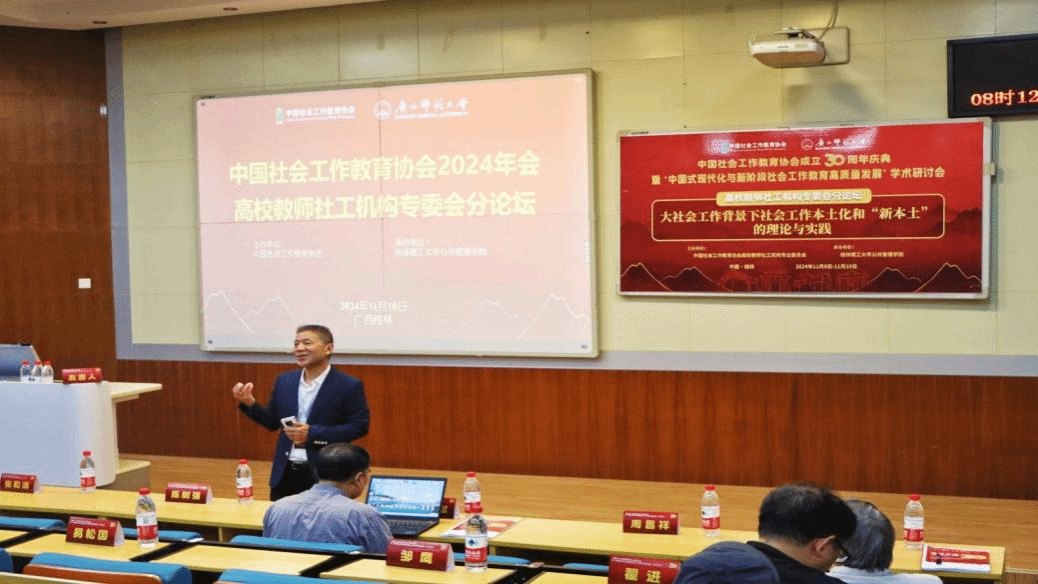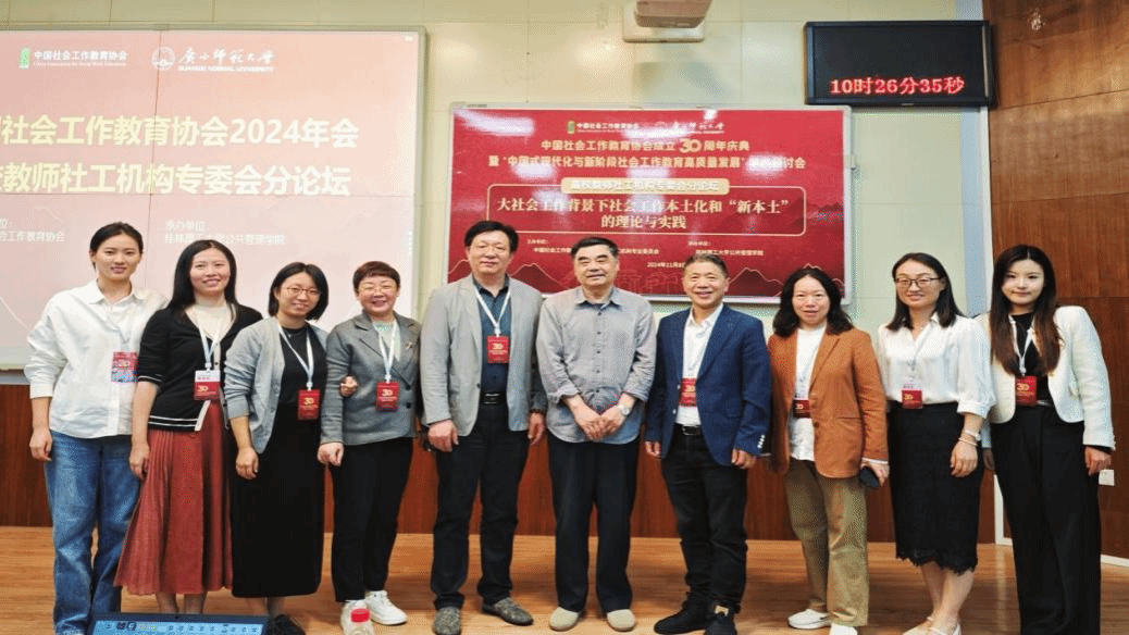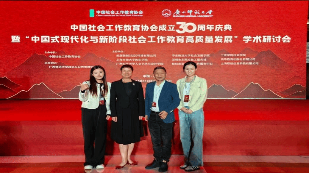 武科大网讯(通讯员 王一杰 刘田林)11月8日至10日,中国社会工作教育协会成立30周年纪念暨“中国式现代化与新阶段社会工作教育高质量发展”学术研讨会在广西桂林隆重召开。本次会议由中国社会工作教育协会主办、广西师范大学政治与公共管理学院承办,美亚联创(北京)科技有限公司提供大会直播技术支持。来自全国社会工作专业院校和行业领域的专家学者齐聚一堂,共同探讨社会工作教育的新趋势、新挑战和新机遇。研讨会内容丰富、议题广泛,为与会者提供了一个难得的交流机会和学习平台。