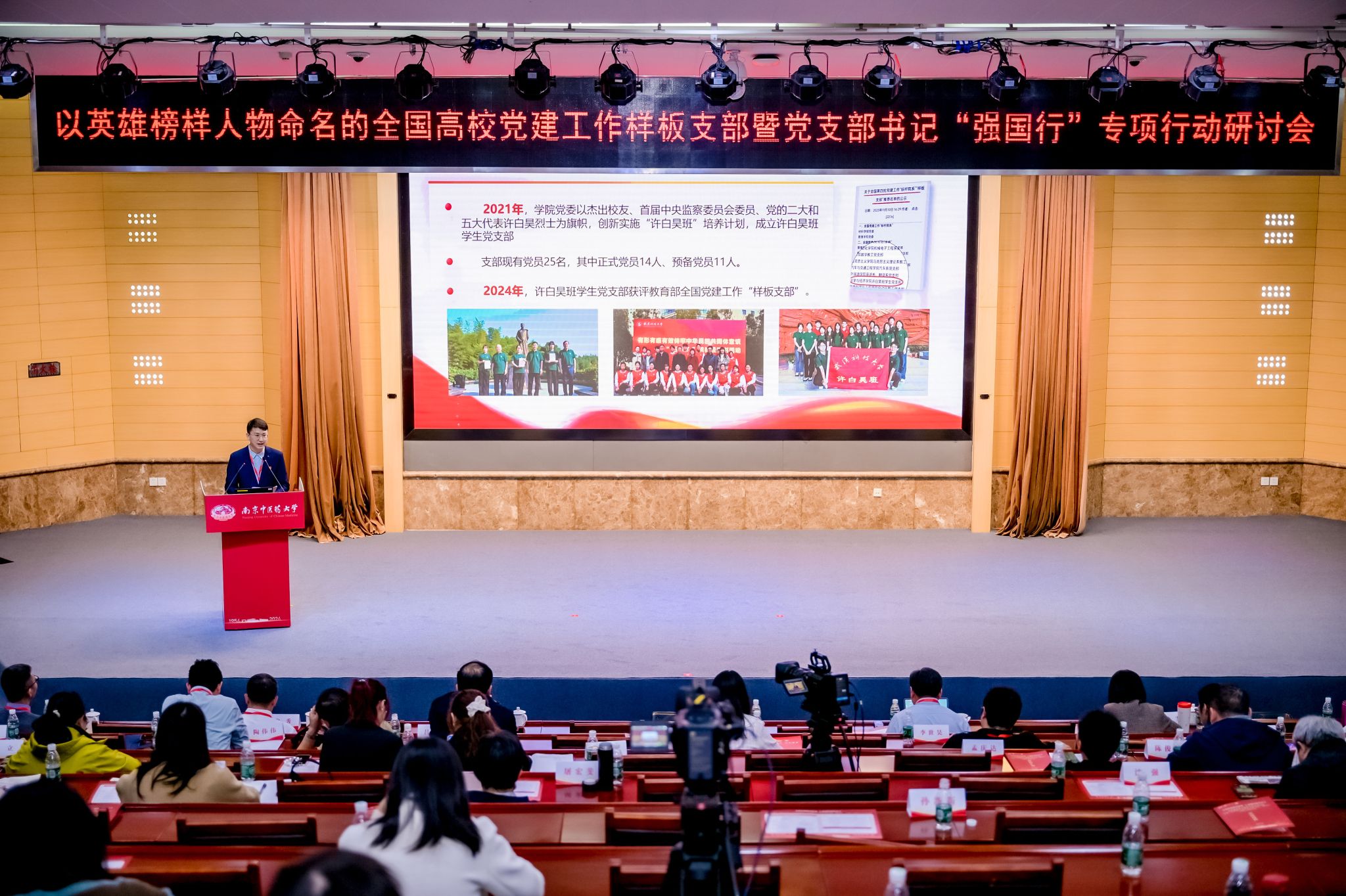 武科大网讯 11月23日,以英雄榜样人物命名的全国高校威廉希尔样板支部暨党支部书记“强国行”专项行动研讨会在南京中医药大学召开。我校教育部全国威廉希尔样板党支部、WilliamHill威廉希尔许白昊班学生党支部作为受邀单位,在会上作支部建设工作经验分享专题报告。