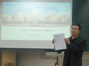 2025年11月6日,经济系在教四楼205组织召开“学科建设发展规划及师德师风专题教育”会议。会议围绕专业建设和师德师风教育两大议题展开,旨在推动学科高质量发展,强化教师队伍责任担当。
