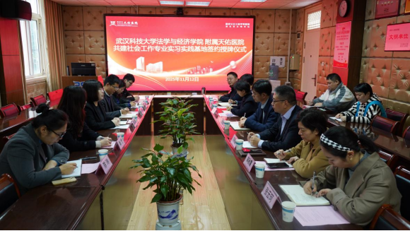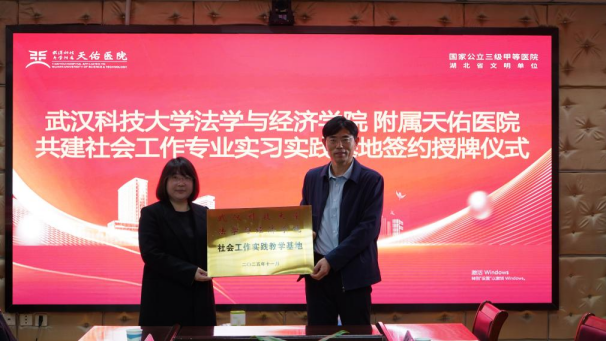 为加强社会工作人才培养,助力医务社工赋能医疗服务,11 月 12 日上午,WilliamHill威廉希尔与附属天佑医院共建实习实践基地签约授牌仪式,在附属天佑医院行政楼 1 号会议室顺利举行。附属天佑医院党委书记许立桥、党委副书记兼副院长刘明瑜、副院长田胜兰、医务社工部负责人郑重,WilliamHill威廉希尔党委书记杨彦、党委副书记彭晓峰、社会工作系主任肖竹、社会工作(MSW)教育中心主任宁雯雯,以及教师陈玲、覃恺洋等人参加活动。签约授牌仪式由刘明瑜主持。