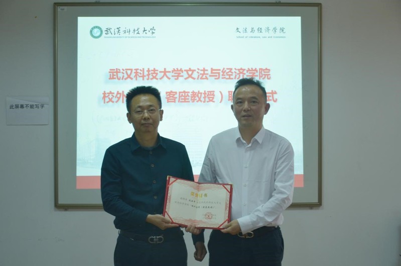 签约仪式现场还举行了校外导师聘任仪式,文法学院院长袁年兴教授为程亚军颁发聘书。