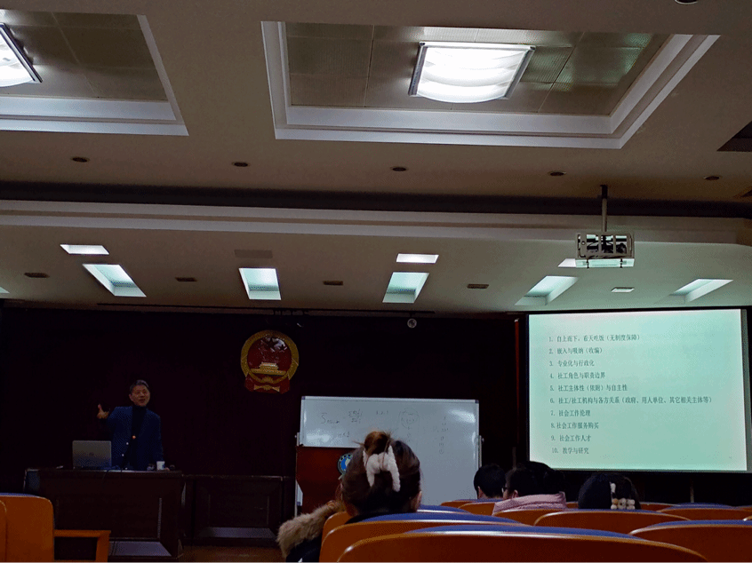 在讲座结束前,易松国教授也与师生进行了沟通交流,回答学生的疑惑,针对学生提出的社会专业的学生毕业后的就业问题,易教授认为社会工作专业是一个很好的专业,对社会工作专业的发展前景也抱以乐观态度,要同学们以长远的眼光看待社工专业,在校学好社会工作专业知识,同时要将社会工作落到实践上,在实践中拓展专业性,提升自身能力。
