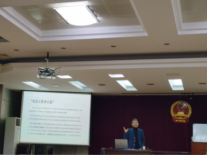 对于中国社会工作本土化的探讨,易松国教授也从中国社会工作本土化的十大问题深入分析,从社会工作的工作制度,社会保障,福利待遇,优质人才等各方面展开分析,对于社会工作发展的现状也提出了对策建议。其次,易松国教授着重讲解了社会工作本土化的路径:一是要明确社会工作的本质,即社会工作的功能、目的、过程的实质;二是要厘清社会工作本土化的内涵;三是要建构中国特色社会工作制度体系,从伦理、概念、制度、理论上去建构富有中国特色的社会工作;四是要建构本土社会工作教学体系,即学科专业要紧靠慈善,设置本土系列的教材课程,采用本土化的教学方式;五是要“挣”得社会工作/社工之“位”,靠专家学者去争取社会工作在社会中的地位,通过社会工作者的努力去挣发展空间和资源,获得更好的发展。