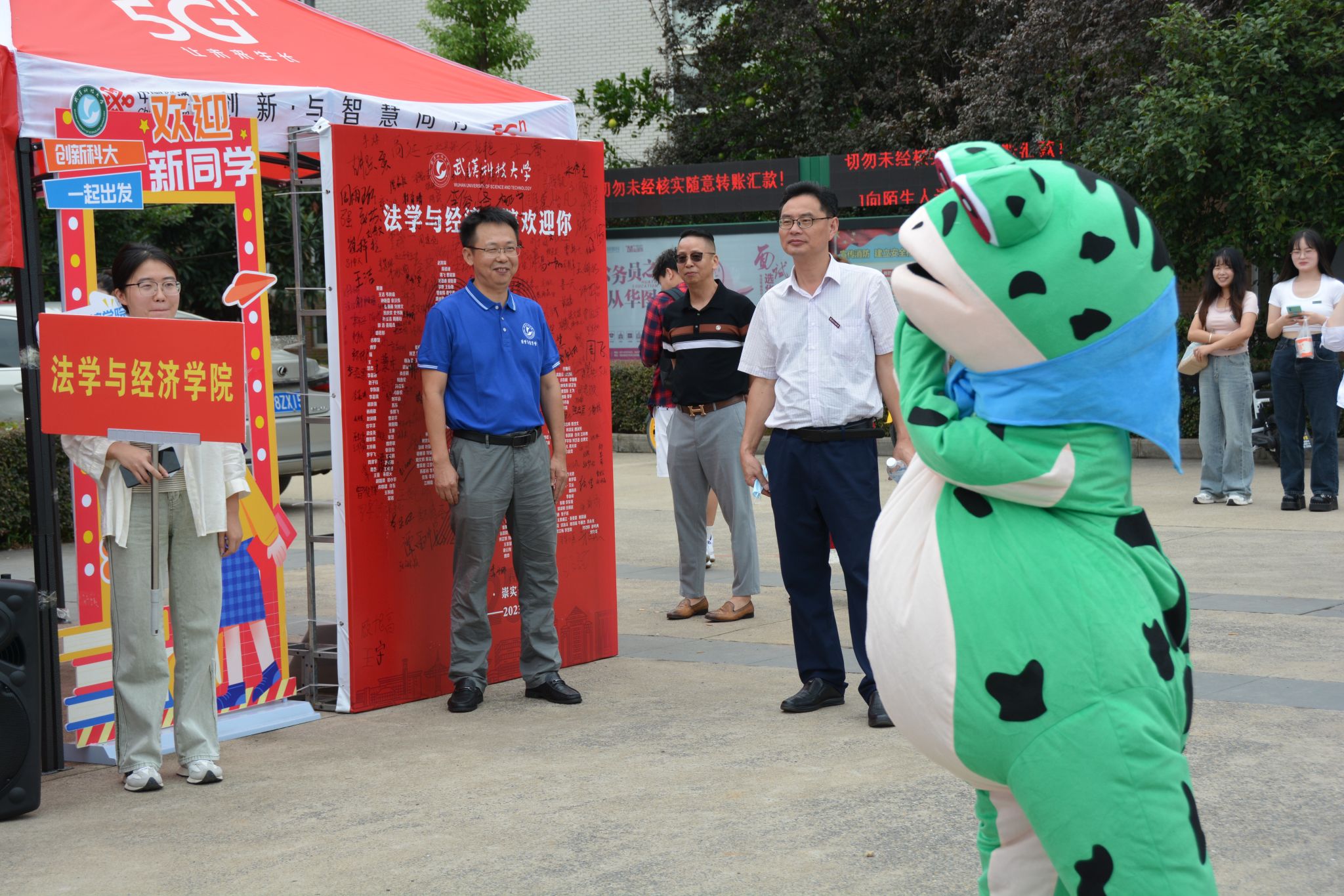 武科大网讯(通讯员李佳芮)欢快鼓舞的舞蹈音乐、辅导员亲切的问候、密密麻麻写满祝福和希望的信纸……9月13日,我院2023级新生顺利迎来到校报到的日子。我院以盲盒文创为特色的迎新活动受到了新生的热烈欢迎,同时有引人注目的网红青蛙现场起舞,迎接新生的到来。
