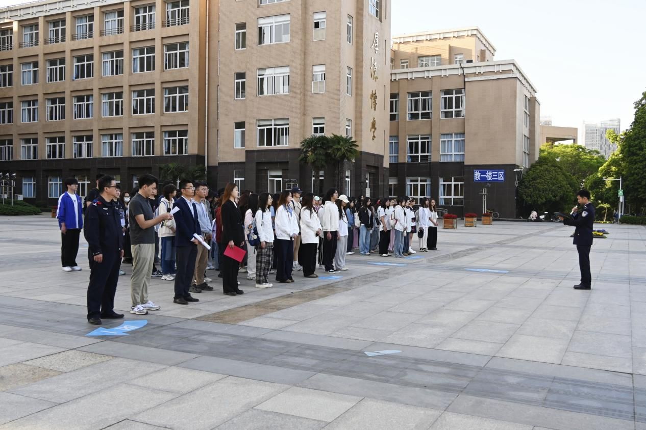 武科大网讯(通讯员万红丽 刘译丹)4月15日,恰逢第十个全民国家安全教育日,为进一步普及国家安全教育,引导学生树立总体国家安全观,增强国家安全意识,学院于主楼前广场举行“国旗下的微思政课——国家安全专题学习教育”活动。院党委副书记彭晓峰,青菱派出所民警康波、周靖渊,全体辅导员,各年级学生代表约100人参与活动。