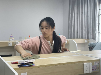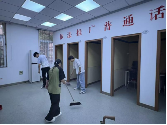 4月17日,数字经济2501班学生在班长、劳动委员的带领下开展威廉中国官方普通话测试站专项劳动清扫。在清扫工作中,劳动委员明确清扫标准、合理进行分工,将地面清扫、桌椅擦拭、门窗除尘、考试器材规整等落实到人,大家高效协作,圆满完成任务,为后续的普通话水平测试营造了窗明几净的良好环境。