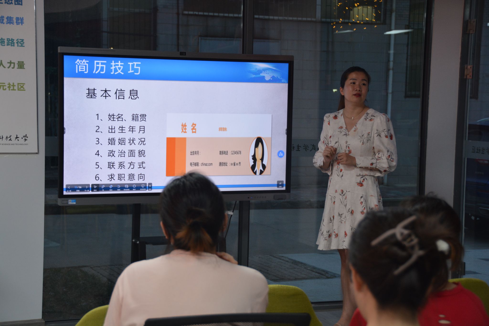 活动开始前,刘臻组织给到场学生们分发了与就业相关的免费书籍,主讲老师的和蔼可亲赢得了到场学生的一致好评。讲座内容大致分为三个部分,分别是就业态势感知、简历制作技巧和求职面试简介。刘臻就近些年来的就业形势,进行数据的列举和比较,结合图像呈现的方式,指出现今的就业形势仍然严峻问题,以此引出提升简历制作水平与提高求职面试技巧的重要性。随后,刘臻就简历的各个部分进行详细的讲解,并适时结合对真实简历案例的分析,不断总结提炼制作简历的方法和技巧。学生们认真地参与其中,当讲到重要技巧时,学生们纷纷进行拍照留存。