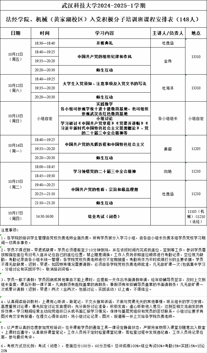 其中考勤统一签到;研讨、实践活动需8-10人自行组成小组于10月13日自行开展,并提交相关记录,相关记录请从学院网站威廉希尔-党校工作-“党课培训小组讨论、实践活动”中下载。
